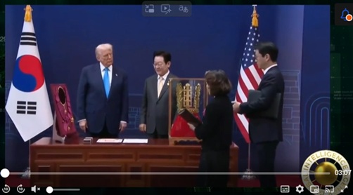 それで、この動画では、トランプ大統領は韓国から王冠と、南北和平交渉の功績により勲章を授与されています。笑。現在、多くの国がトランプ大統領にいわゆる王冠を贈りたいと考えており、ここ数日で実際に贈っていますが、それはすべて彼が世界中で行っている約束に基づいています。ステーブルコインと暗号通貨に関して、様々な指導者との間で非常に多くの会話が行われています。彼は語っており、私たちはそれらの会話のいくつかを傍受しましたが、国家元首や他のファミリーのメンバーに、自分が地球の王?ソロモン王?に即位するだろうと語っていました。よくわかりませんが、彼は王になるでしょう。