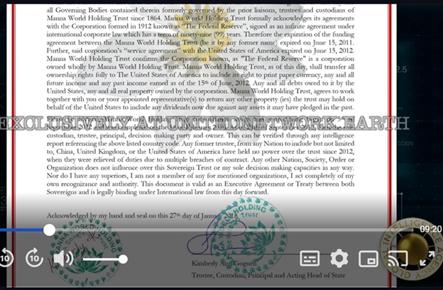 当時、この手紙が実際に大統領執務室のトランプ氏の机の上に置かれていた写真がファイルに保存されています。手紙は、当時届ける予定だった党によって無事に届けられましたが、無視されました。当時、少なくとも電話では、彼らはこれらの提案のいずれにも興味がないため、申し出を断ったと伝えられました。次に、当時のトランプ政権と私との間で外交ルートで別の会話が行われ、彼は外交ルートで連邦準備制度とその資産の国有化の申し出を直接断りました。 彼が当時断った理由は、彼らがそれを非公開にしておきたい、ただ支配したかったからです。彼らは、連邦準備制度を非公開のままにしておきながら、ドラゴン騎士団からブラックサン騎士団へと所有者を変えて民間レベルで乗っ取ることを望んでいると、私は聞かされました。連邦準備制度は一時期、かなりの利益を上げ、大きな力を持っていました。