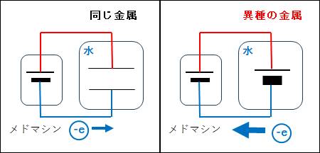 そのため、2本の電極では、起電力の発生しない同種金属を使う必要があります。