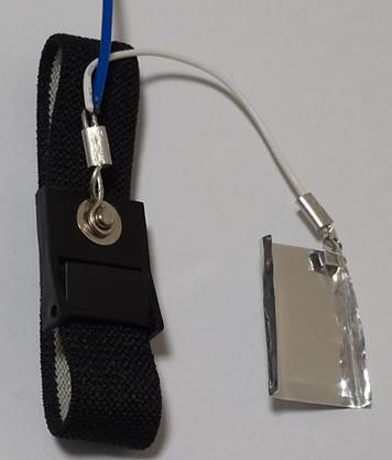 ・「静電気防止リストバンド」を腕時計のように手首にセットし使用する。Amazonで購入できます。これはプラス極の事例です。