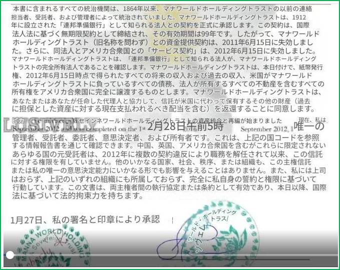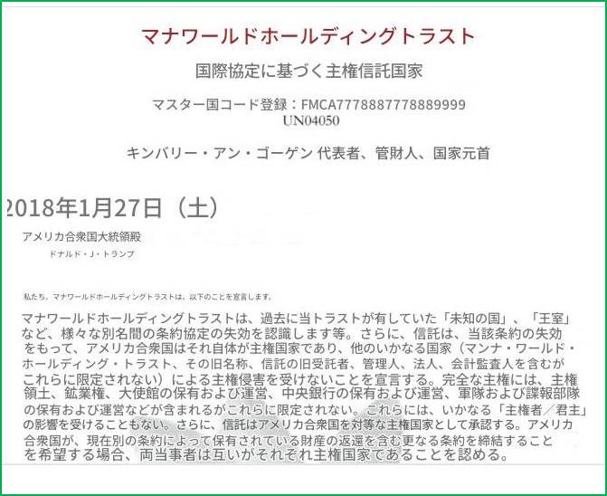 「2018年1月の古い手紙」 : Manna World Holding Trust
