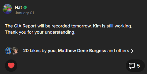GIAレポートは明日収録されます。
